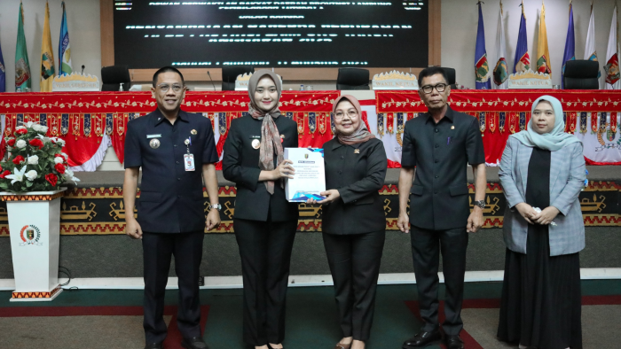 Penyerahan dilakukan oleh Wakil Gubernur Lampung Jihan Nurlela kepada Wakil Ketua I DPRD Provinsi Lampung Kostiana, di Ruang Sidang DPRD Provinsi Lampung, Bandarlampung, Senin (11/8/2025).