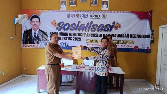 Way Kanan, – Anggota DPRD Provinsi Lampung Fraksi Partai Nasdem Yusee Sogoran menggelar sosialisasi Pembinaan Ideologi Pancasila dan Wawasan Kebangsaan di Kampung Pulau Batu dan Bandar Dalam Kecamatan Negeri Agung Kabupaten Way Kanan, Senin (25/08/2025).