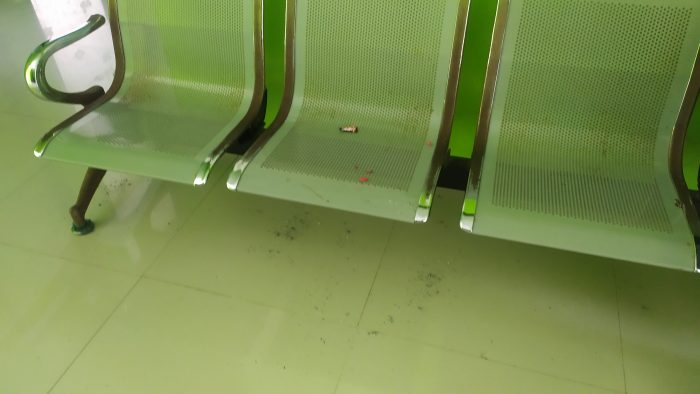 Selain pintu utama yang rusak dan hanya di ikat dengan kawat, terlihat juga kantor utama Dinas Lingkungan Hidup, kotor penuh dengan abu rokok yang berserakan. Hal itu sangat mencerminkan bahwa Dinas yang menaungi kebersihan dan tata kelola kabupaten ini sangat jauh dari kata baik.