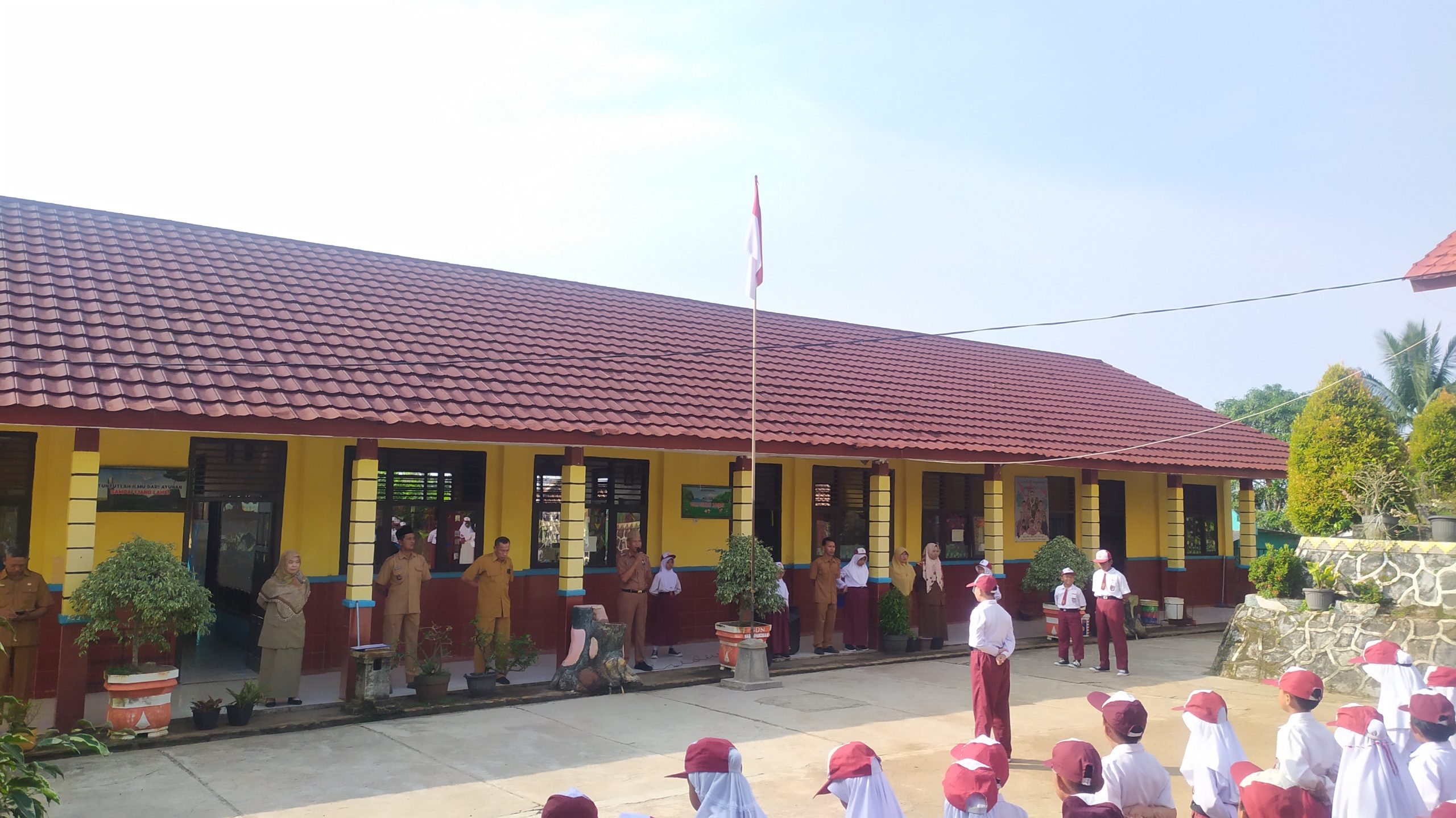 Terlihat dalam upacara pengibaran bendera pada hari senin, diikuti oleh Camat Rajabasa, M. Sabit S.A.P, kasubag perencanaan dan keuangan, Asrial mewakili korwil pendidikan kecamatan Rajabasa,Kepala Desa Syarif Hidayat.