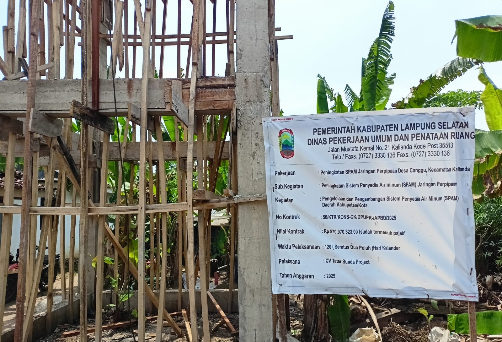 Pada tahun 2025, Dinas PUPR Kabupaten Lampung Selatan Dinas PUPR kepala dinas PU Hasbi melalui Hasanuddin Bima, selaku Kepala Bidang Bina Marga. Membangun Sistem Penyediaan Air Minum (SPAM) berupa sumur bor air tanah di desa. Melalui program ini, sehingga ratusan kepala keluarga kini lebih mudah mendapatkan air bersih.