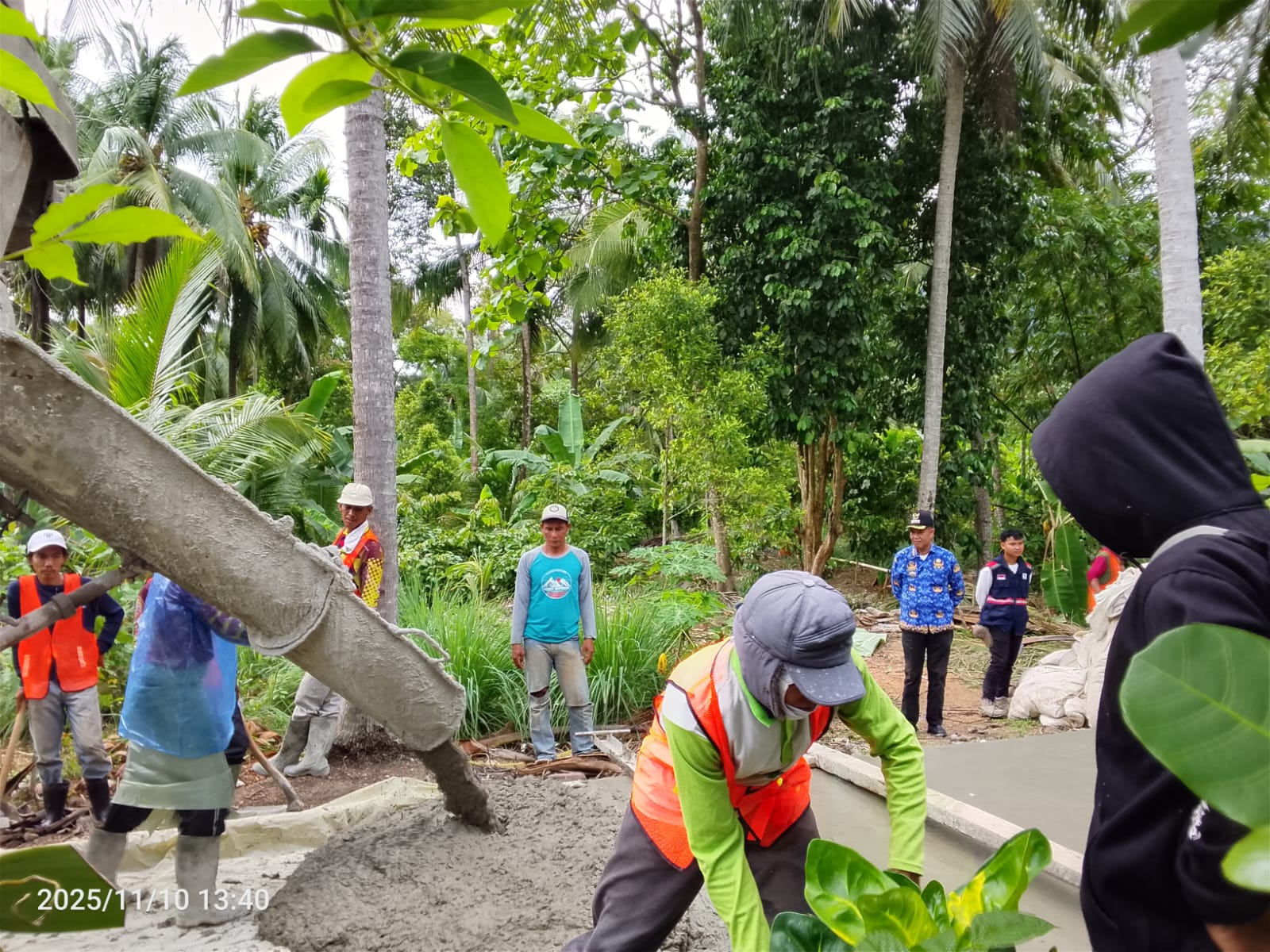 Lampung Selatan, – Camat Rajabasa Firdaus, SE., ME melakukan monitoring pembangunan ruas jalan yang terletak di Desa Kunjir, Kecamatan Rajabasa, Senin (10/10/2025).