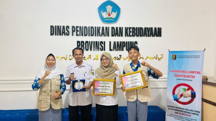 Penghargaan diserahkan langsung oleh Kepala Dinas Pendidikan dan Kebudayaan Provinsi Lampung dalam seremoni resmi sebagai bentuk apresiasi atas kreativitas, kekompakan tim, serta kualitas produksi video yang ditampilkan para siswa.